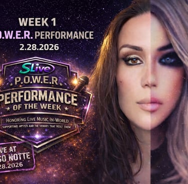 P.O.W.E.R. stands for Performance Of the Week Elevated and Recognized. It is SLiveMusic’s weekly celebration of a live moment that truly mattered. Not just a set. Not just a name on a schedule. A performance that sparked energy, filled a venue, and reminded us why live music in Second Life is special.